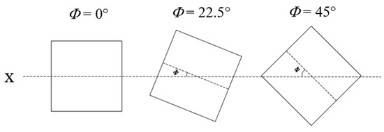 Schematic illustration of the square tube cross-sections at different orientation angles (Φ).