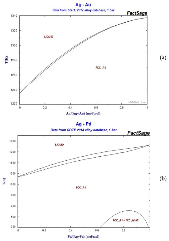 (a) Ag-Au BEPD; (b) Ag-Pd BEPD; (c) Au-Pd BEPD. Reprinted with permission from ref. []. 2016, FactSage.