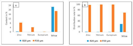 Chemical compostion (A) and distribution rate (B) of different target elements in R20 µm and P20 µm.