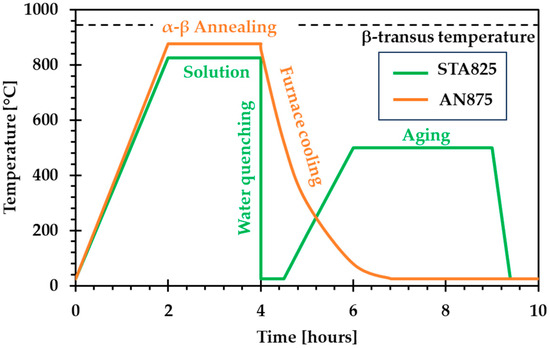 - Pirro, G.; Martucci, A.; Morri, A.; Lombardi, M.; Ceschini, L. A novel solution treatment and aging for powder bed fusion-laser beam Ti-6Al-2Sn-4Zr-6Mo alloy: Microstructural and mechanical characterization. Int. J. Miner. Met. Mater. 2025, 32, 414–424. [Google Scholar] [CrossRef]