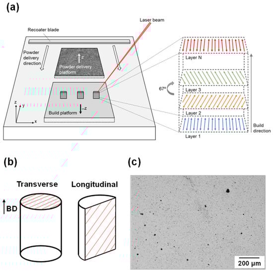 - Dejene, N.D.; Tucho, W.M.; Lemu, H.G. Effects of Scanning Strategies, Part Orientation, and Hatching Distance on the Porosity and Hardness of AlSi10Mg Parts Produced by Laser Powder Bed Fusion. J. Manuf. Mater. Process. 2025, 9, 78. [Google Scholar] [CrossRef]