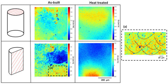 - The as-built Mg-1Zn specimen showed irregular and anisotropic grain shapes with columnar morphology along the build direction. Only minor changes were observed after heat treatment, involving a slightly refinement of grain size.