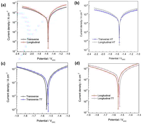 - Following heat treatment, both the transverse and longitudinal sections demonstrated an increase in cathodic kinetics and a decrease in anodic kinetics. Consequently, the corrosion resistance decreased in both sections after heat treatment.
