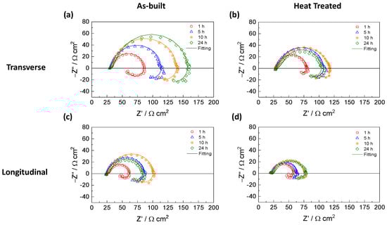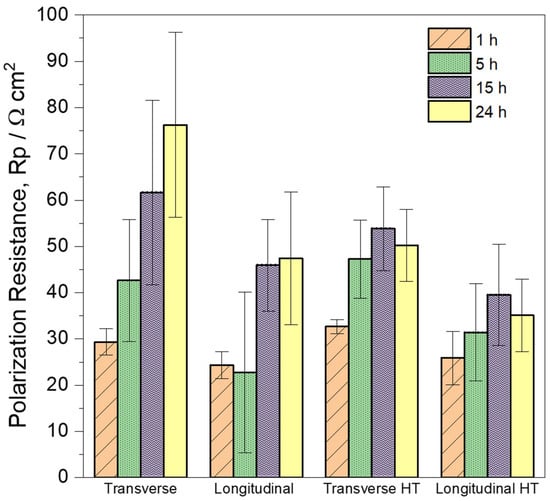 - The samples are ranked in increasing order of polarization resistance after 24 h of immersion as follows: longitudinal heat-treated, transverse heat-treated, longitudinal as-built, and transverse as-built.