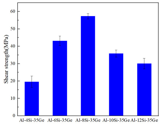 - The maximum shear strength of the joint was 57.3 MPa, using Al-8Si-35Ge filler metal. Lower Si content in fillers resulted in defects in joints, and higher Si content introduced much more brittle Si(Ge).