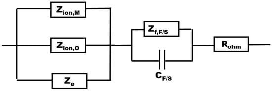 Complex non-linear fitting of impedance data to the transfer function of the proposed model using a Levenberg–Marquardt algorithm was performed on an Origin Pro platform (OriginLab, Northampton, MA, USA). Each dataset was statistically weighted.