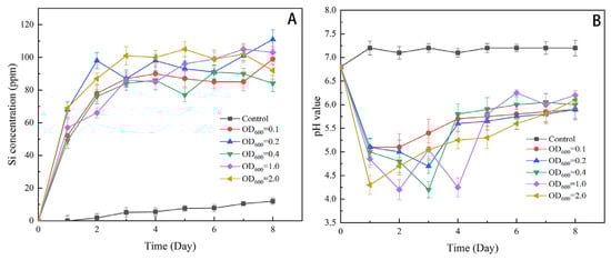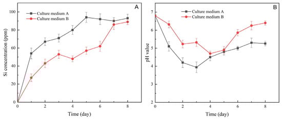 - Guo, Y.; Teng, Q.; Yang, Z.; Sun, B.; Liu, S. Investigation on bio-desilication process of fly ash based on a self-screened strain of Bacillus amyloliquefaciens and its metabolites. J. Biotechnol. 2021, 341, 146–154. [Google Scholar] [CrossRef] [PubMed]