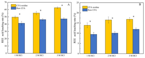 - Bio-desilication improved the REE leaching rate of coal fly ash, with an increase of 8–15% for CFB coal fly ash and only 4–5% for PCF coal fly ash, indicating that the impact of bio-desilication on REE extraction depends on the coal fly ash type.