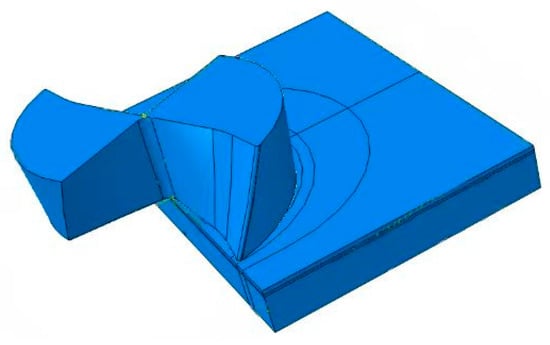 In this modeling, after building the part model, the mesh is divided first. The advantage of doing so is that in the process of mesh division, it is often found that the geometric model of the component needs to be further modified. For example, there are too small filet radii or line segments, resulting in unnecessary mesh refinement. After these modifications, the previously defined boundary conditions, loads, and contacts may become invalid and need to be redefined. Dividing the mesh first reduces this unnecessary repetitive work. Being able to reasonably divide the mesh can obtain high-quality simulation results while also saving simulation calculation time and improving work efficiency as much as possible. In this paper, it is chosen to divide the mesh finer at the key positions such as the tool contact area of the workpiece and the cutting-edge plane of the tool, while the mesh in other areas of the workpiece and the tool is relatively coarser, as shown in Figure 3.