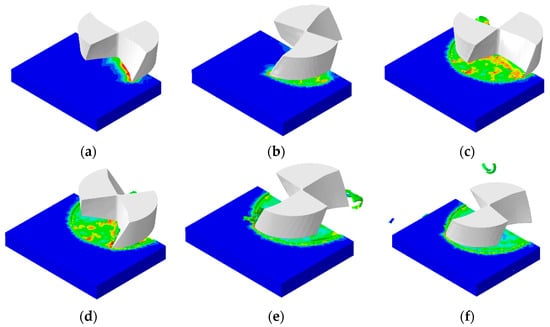 Simulation of the micro-milling process (a–f) means the different status with the time increasing.