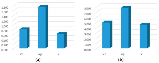 Under the influence of three cutting parameters, namely milling speed, milling depth, and feed rate, the range chart and variance chart of the milling force of single crystal DD5 are shown in Figure 9. It can be seen from the figure that the range and variance of the milling depth are both the largest among the three, followed by the milling speed, while the feed rate has the smallest value. The range reflects the variation range of the data. The larger the range, the wider the data range; the smaller the range, the narrower the data range. The variance can be used to measure the fluctuation of a batch of data, that is, the degree to which the data deviates from the average. The larger the variance, the greater the fluctuation of the data and the less stable it is; the smaller the variance, the smaller the fluctuation of the data and the more stable it is. Therefore, in this experiment, the range and variance of each factor can represent the influence of that factor on the orthogonal experiment. The larger the range and variance, the greater the degree of influence. Hence, the following conclusion can be drawn: In the orthogonal experiment of the milling force of single crystal DD5, the milling depth has the greatest impact on the milling force during its micro-milling process, while the milling speed and feed rate have less impact. Therefore, selecting the milling depth reasonably plays a very important role and practical significance in effectively controlling the milling force during the micro-milling process.