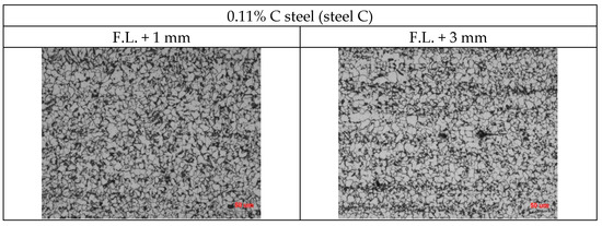 Microstructures at different distances from the fusion line for 0.11% C steel.