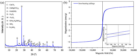 (a) XRD pattern and (b) magnetic hysteresis loop of iron-bearing tailings.