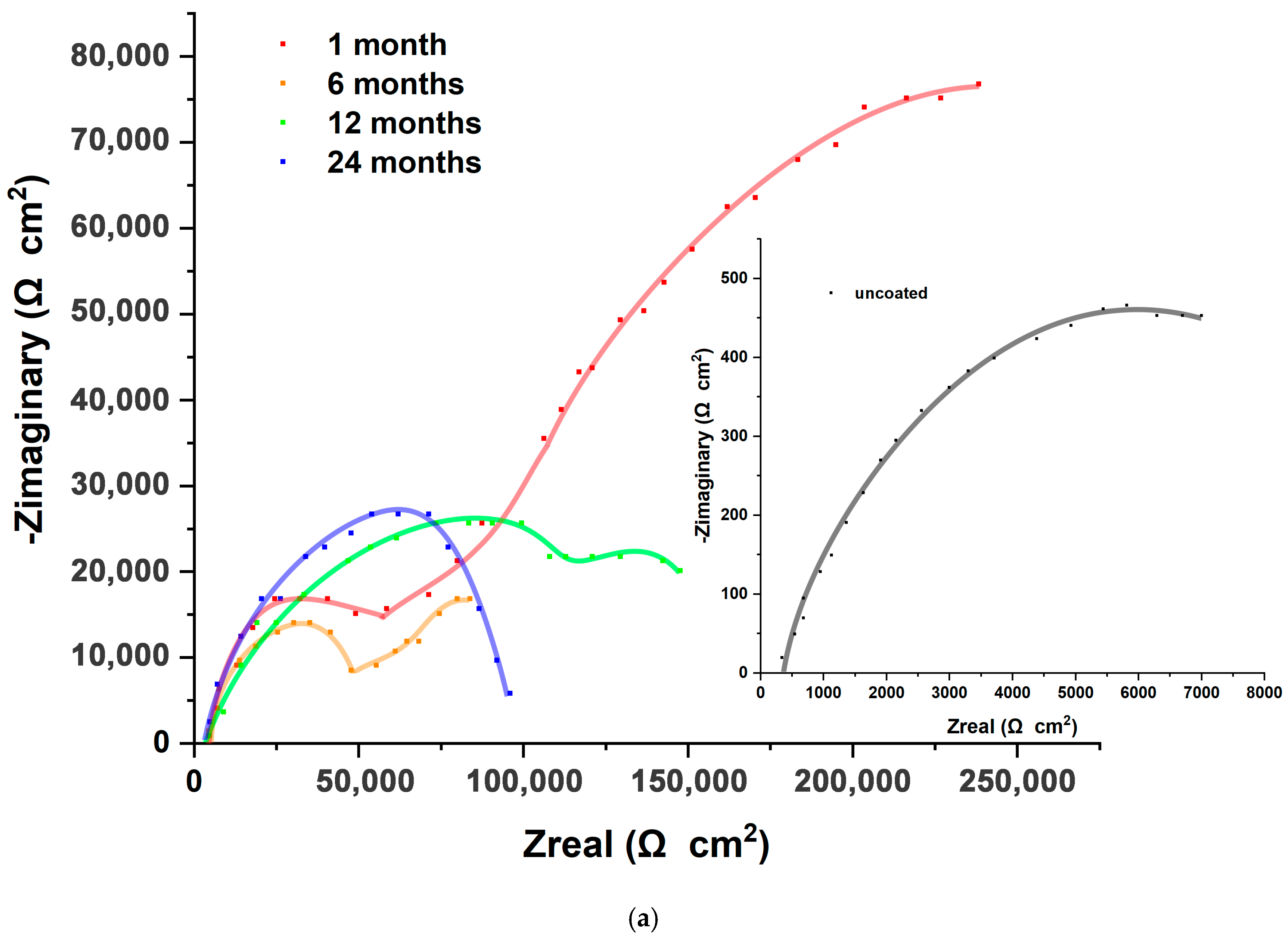 Immersion Time (Months) | Rs (Ω) | CPEdl (F × cm−2) | ndl | Rct | CPEc (F × cm−2) | nc | Rc (Ω × cm2) | CPEdiff (F × cm−2) | ndiff | Rdiff (Ω × cm2) | η (%) |