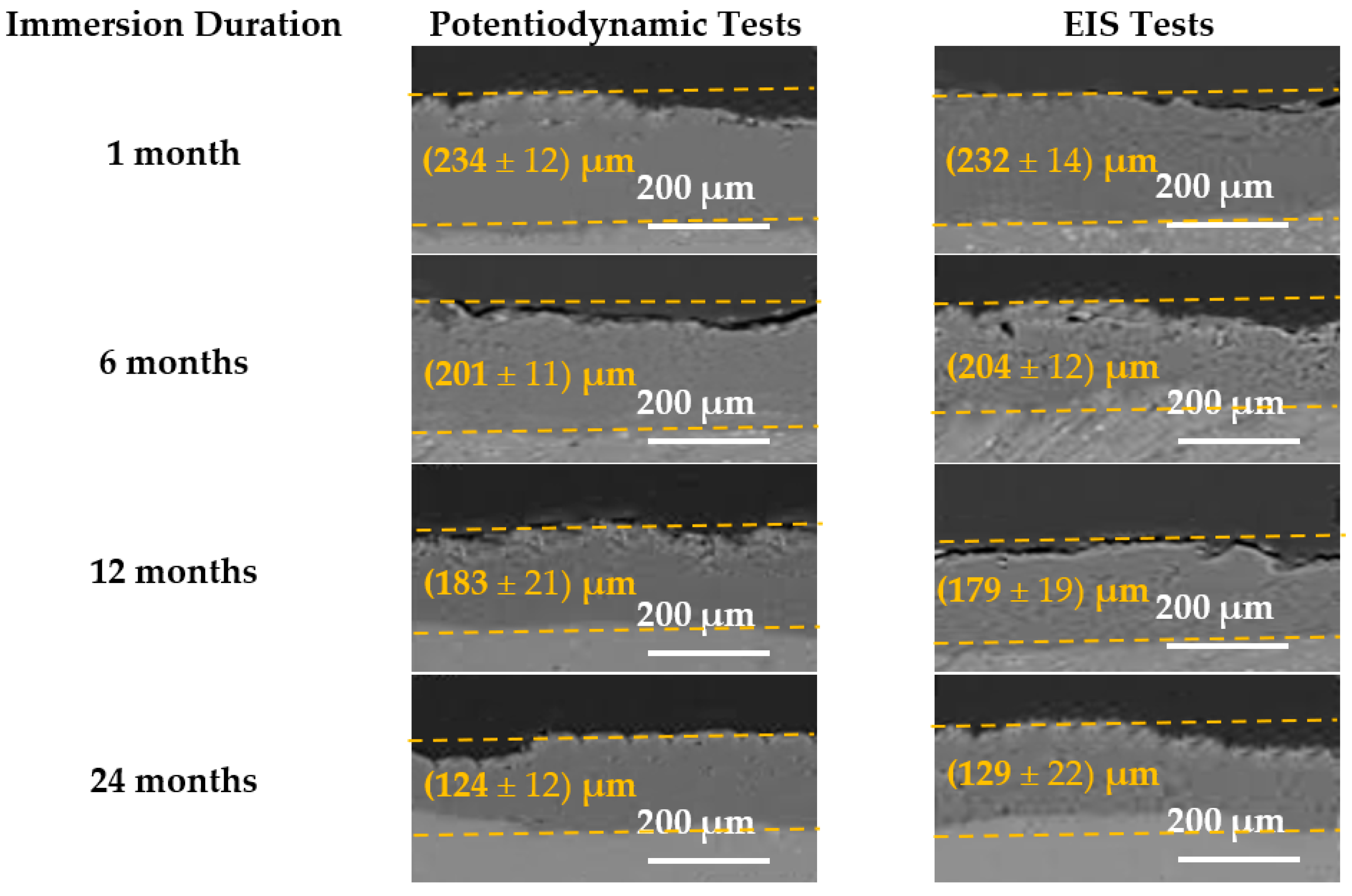 3.2. Laboratory Immersion Tests