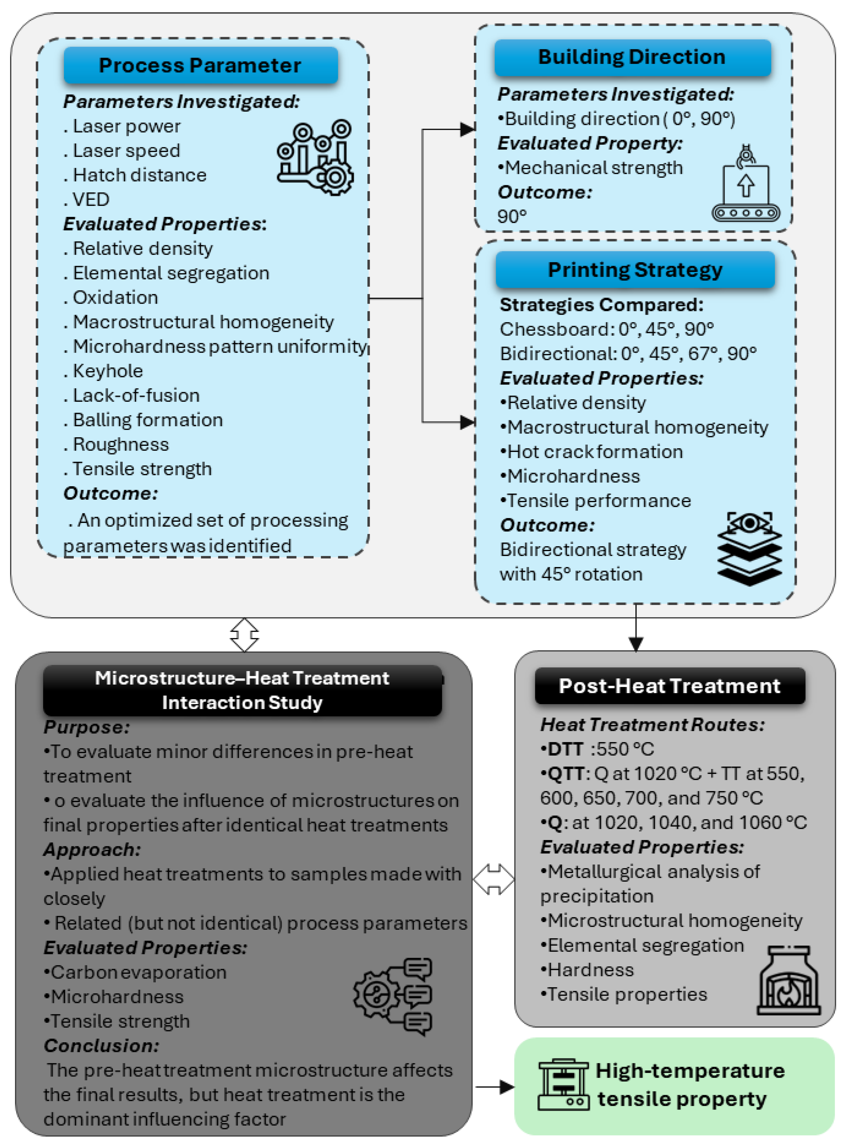 Figure 1. Overview of the optimized process parameters and heat treatments from previous studies by the authors.