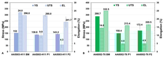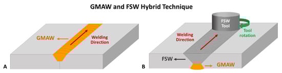 - The GMAW–FSW hybrid techniques applied to AA6082-T6 and AA5083-H111 successfully modified the microstructure and improved the mechanical properties, indicating the robustness of the hybrid welding approach.