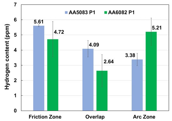 - Kyriakopoulou, H.P.; Farantos, C.N.; Vazdirvanidis, A.; Markoulis, A.; Xanthis, C.A.; Chatzidouros, E.V.; Pantelis, D.I. Investigation of the Hydrogen Embrittlement Susceptibility of AA5083-H111 and AA6082-T6 Dissimilar Friction Stir Welds. J. Mater. Eng. Perform. 2019, 28, 7687–7701. [Google Scholar] [CrossRef]