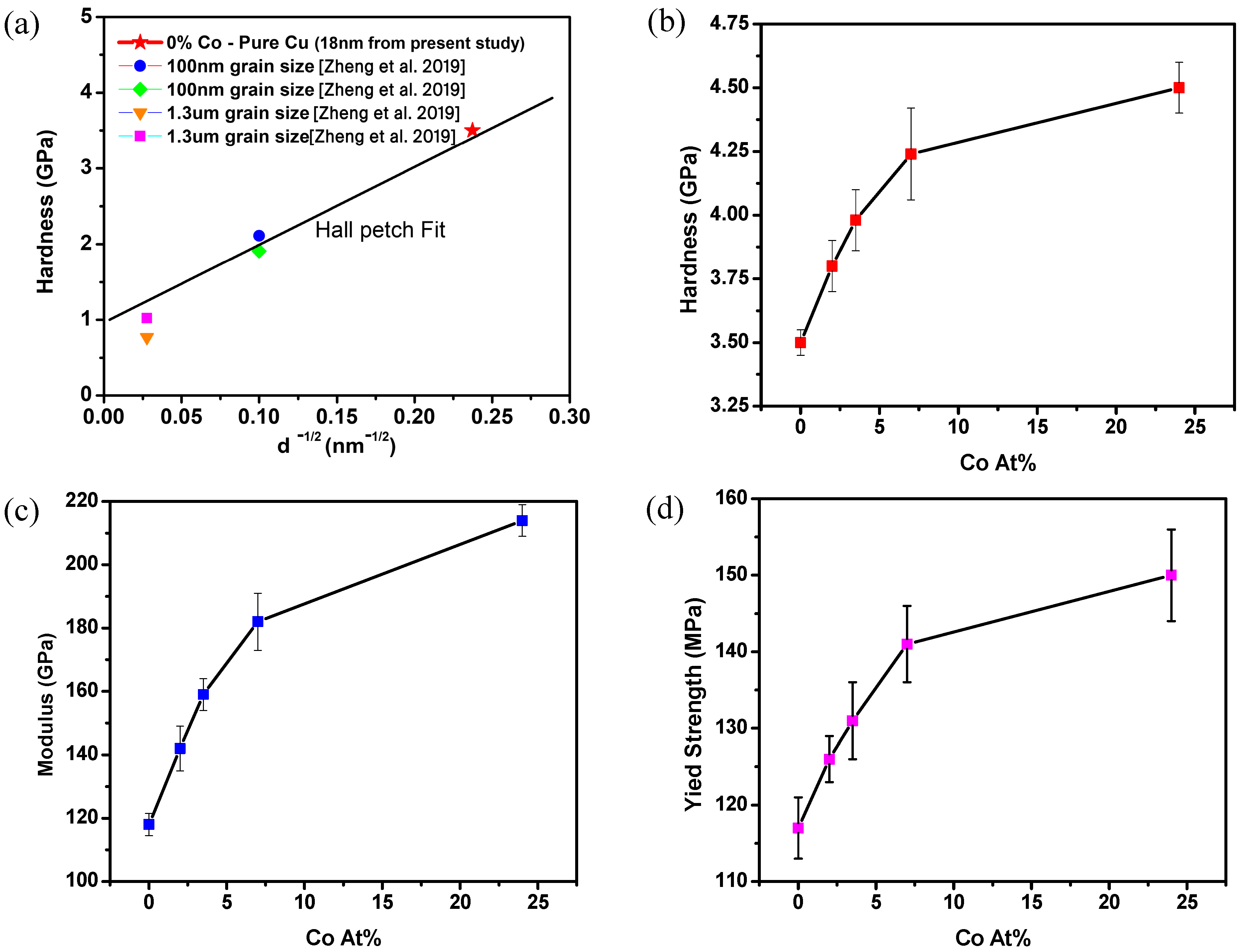 S. No. | Co Content (%) | Hardness (H) [GPa] | Modulus [GPa] | Calculated Yield Strength (τyield) [MPa] |