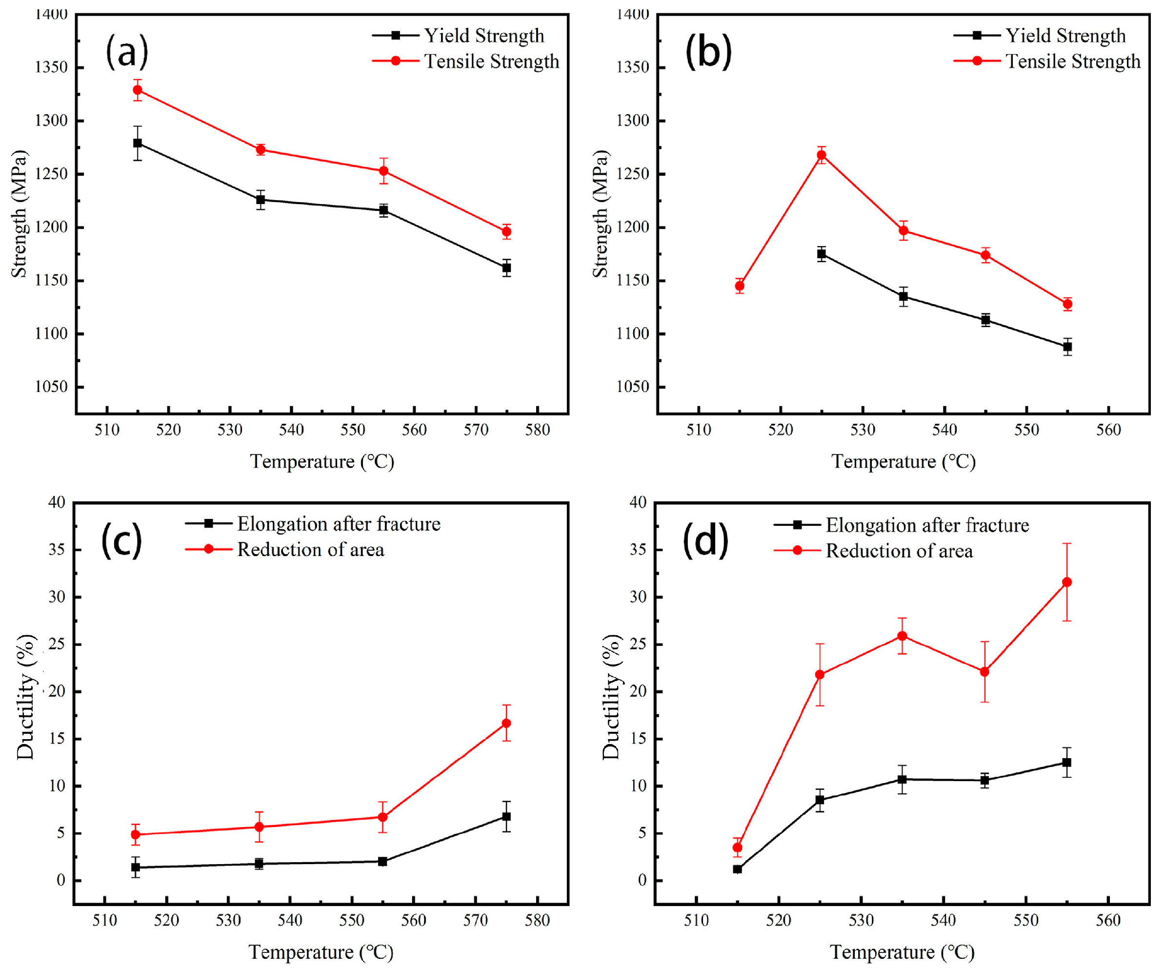 | Tensile Strength /MPa | Yield Strength /MPa | Elongation /% | Reduction in Area /% | |