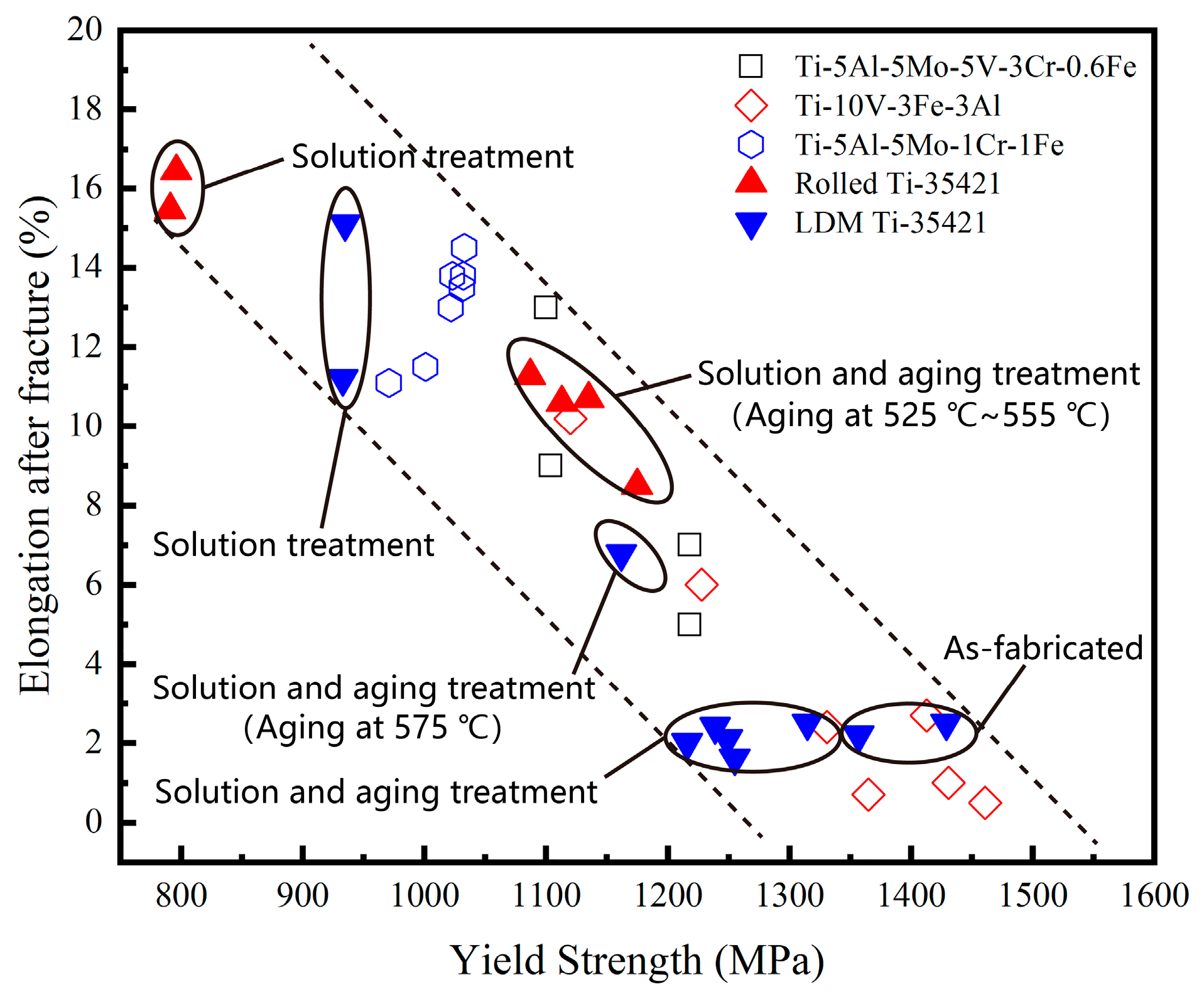 - Fanning, J.C. Properties of TIMETAL 555 (Ti-5Al-5Mo-5V-3Cr-0.6Fe). J. Mater. Eng. Perform. 2005, 14, 788–791. [Google Scholar] [CrossRef]
