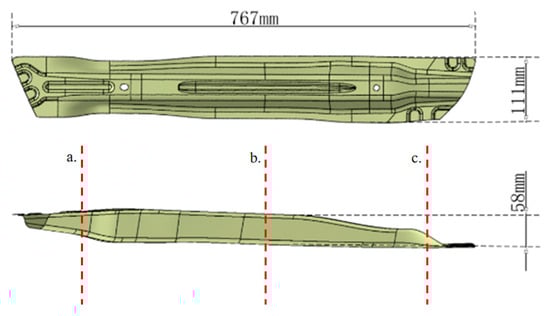 In addition, Figure 13 shows that the crash beam manufactured under the optimal process condition matches the target shape and dimensions. Therefore, the consistency among the predicted thinning rates, the validated thickness distribution, and the final geometry collectively confirms the robustness and reliability of the proposed me.