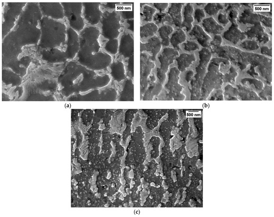 Figure 12 presents the micrographs obtained by Scanning Electron Microscope of the samples in the (a) as-built state, (b) after direct aging at 170 °C for 6 h, and (c) after direct aging at 170 °C for 24 h, respectively.