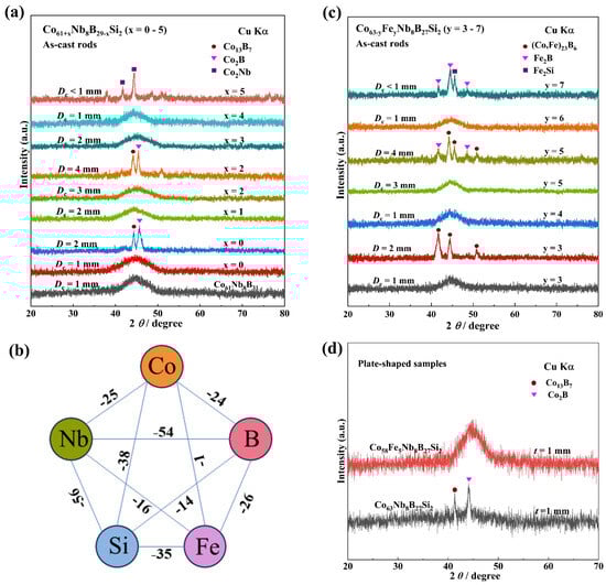 - Jia, S.K.; Jiang, Y.H.; Chen, S.W.; Han, X.J. Enhancing glass forming ability and magnetic properties of Co-Fe-Si-B metallic glasses by similar element substitution: Experimental and theoretical investigations. Comput. Mater. Sci. 2022, 213, 111639. [Google Scholar] [CrossRef]