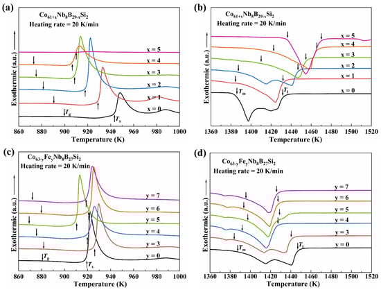 - Zhang, J.Y.; Ma, S.; Wang, H.; Kubota, T.; Li, Y.H.; Kato, H.; Umetsu, R.Y.; Yao, M.; Zhang, W. Effects and mechanisms of Nb and Fe additions on glass-forming ability and magnetic properties of a Co71.5Gd3.5B25 metallic glass. J. Alloys Compd. 2023, 968, 171875. [Google Scholar] [CrossRef]