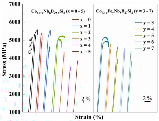 - Shen, B.; Inoue, A.; Chang, C. Superhigh strength and good soft-magnetic properties of (Fe,Co)-B-Si-Nb bulk glassy alloys with high glass-forming ability. Appl. Phys. Lett. 2011, 85, 4911–4913. [Google Scholar] [CrossRef]