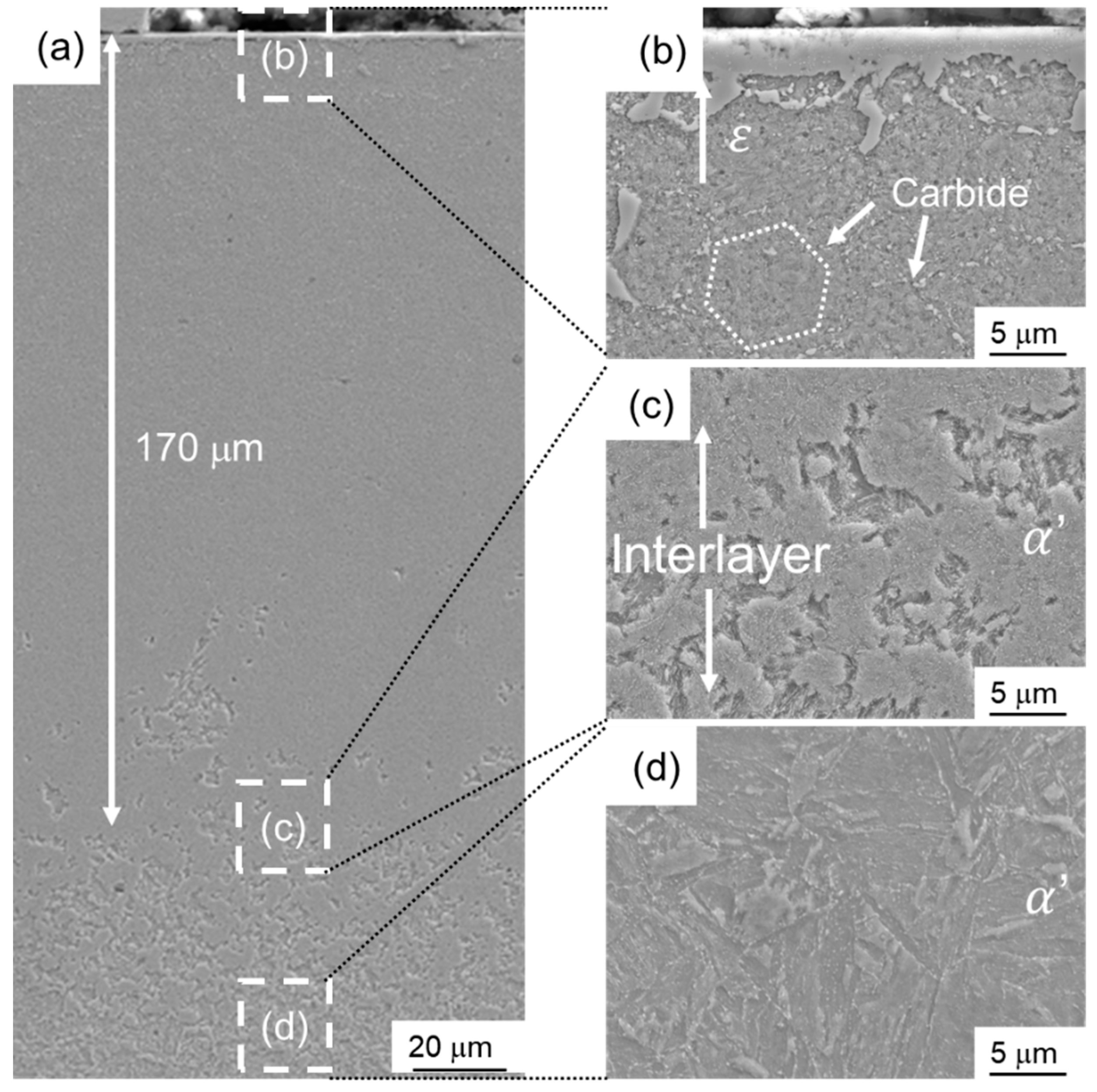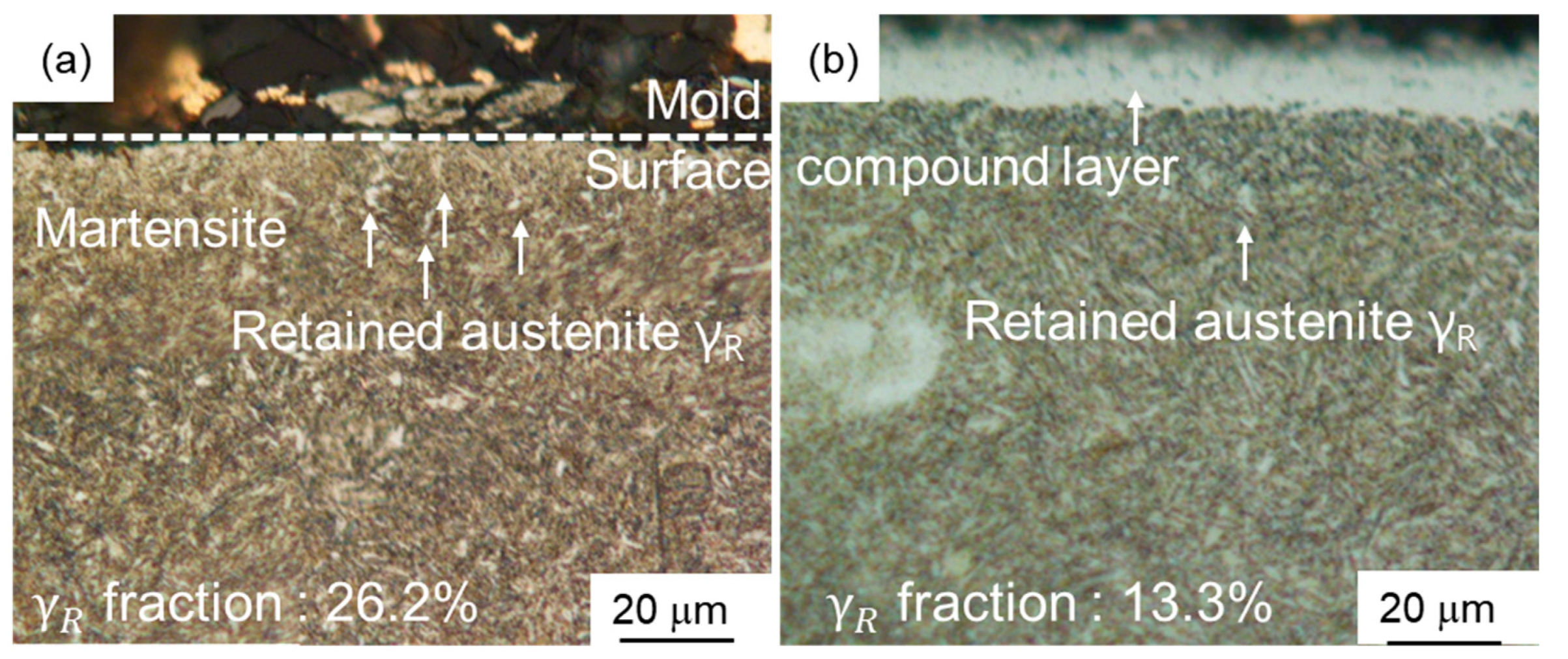 - Wang, B.; Liu, B.; Gu, J.; Somers, M.A. Gaseous carbonitriding of high carbon chromium bearing steel: Correlation between composition, microstructure and stability. Surf. Coat. Technol. 2022, 438, 128408. [Google Scholar] [CrossRef]