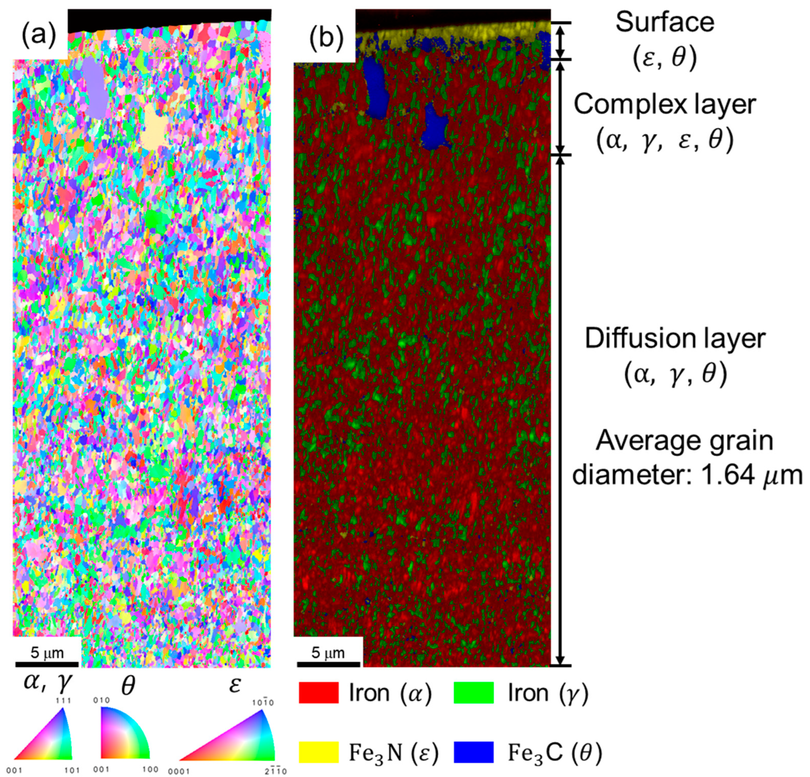 - Wu, D.; Ge, Y.; Kahn, H.; Ernst, F.; Heuer, A. Diffusion profiles after nitrocarburizing austenitic stainless steel. Surf. Coat. Technol. 2015, 279, 180–185. [Google Scholar] [CrossRef]