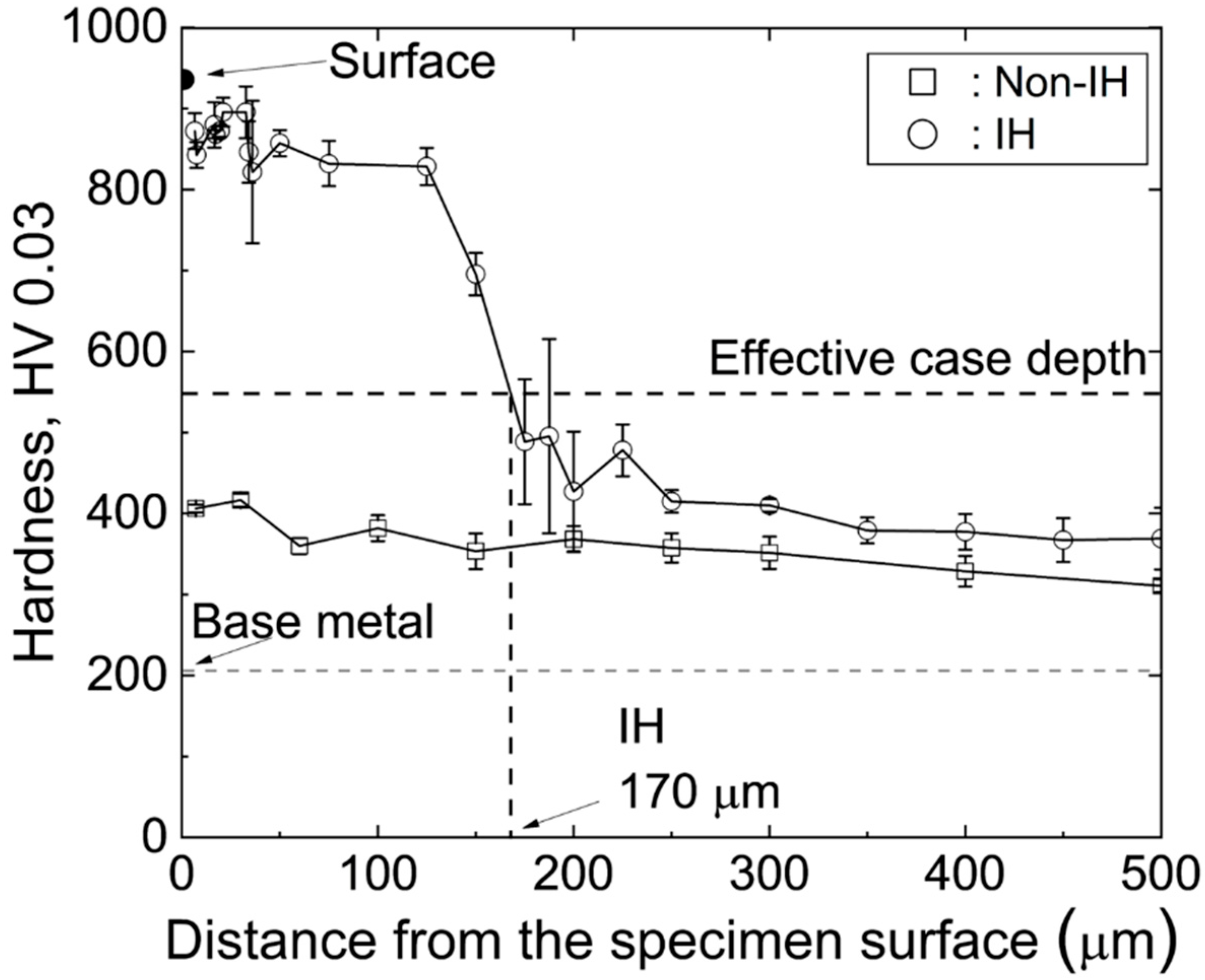 - SAE. Methods of Measuring Case Depth—J423; SAE International: Warrendale, PA, USA, 1998. [Google Scholar]