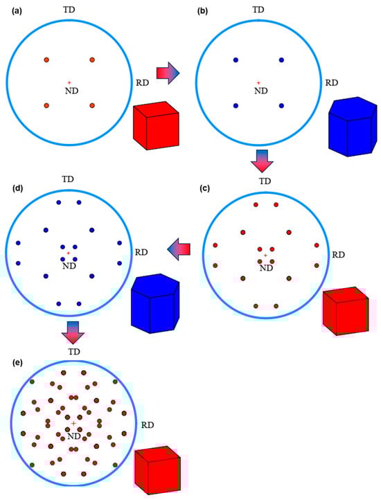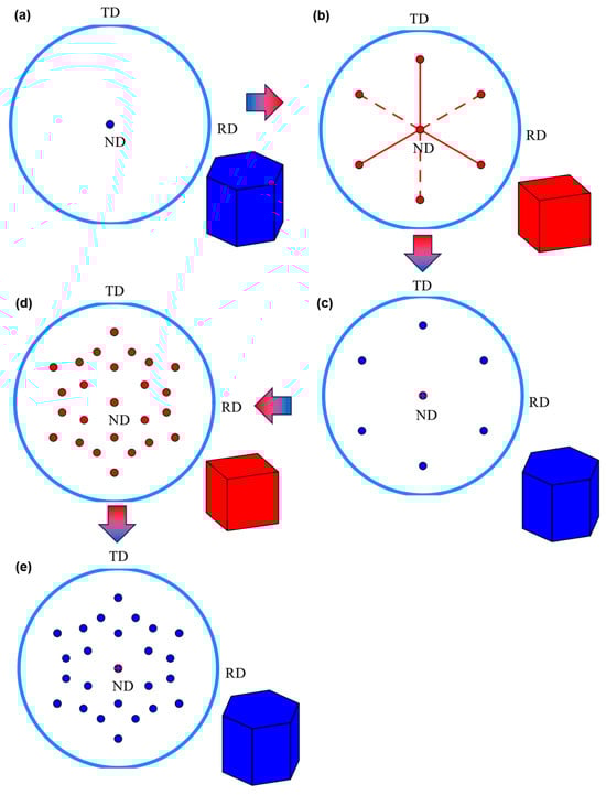 - Huang, Y.; Gu, X.; He, J.; Luo, J.; Zhu, Z.; Xu, G. Revealing the Impact of Initial Textures on Orientation Memory Effect During HCP → FCC → HCP Transformation in High-Purity Cobalt. JOM 2025, 77, 2836–2843. [Google Scholar] [CrossRef]