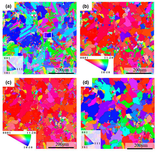 - Huang, Y.; He, J.; Gu, X.; Xu, G.; Qi, Q.; Luo, J. In situ EBSD study on the abnormal grain growth phenomenon in high-purity cobalt. J. Mater. Sci. 2024, 59, 18698–18711. [Google Scholar] [CrossRef]