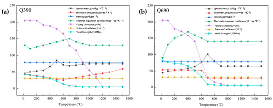 - Qiang, X.H.; Bijlaard, F.; Kolstein, H. Dependence of mechanical properties of high strength steel S690 on elevated temperatures. Constr. Build. Mater. 2012, 30, 73–79. [Google Scholar] [CrossRef]