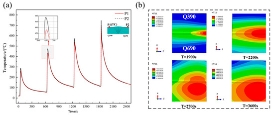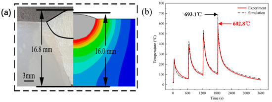 - Thermal conductivity was artificially increased to simulate the convective stirring effect of fluid flow in the weld pool (above 1500 °C). This was also referred to as effective heat conductivity based on the thermo-capillary flow or the Marangoni effect [36].
