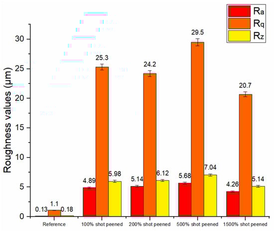 - The mean surface roughness value increased progressively from 100% to 500% coverage but decreased at 1500% coverage because of the repeated shot peening process.