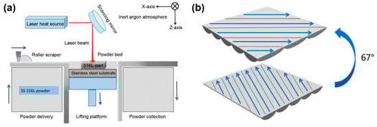 (a) Schematic diagram of LPBF technology and (b) laser scanning strategy.