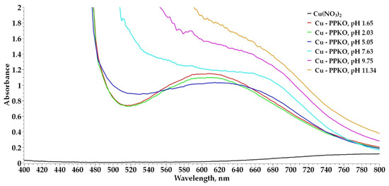 Identification by UV–visible spectrophotometry of the species formed in the Cu:PPKO system.