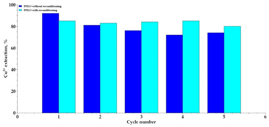Effect of chemical reconditioning of PPKO on Cu2+ extraction efficiency over multiple cycles.