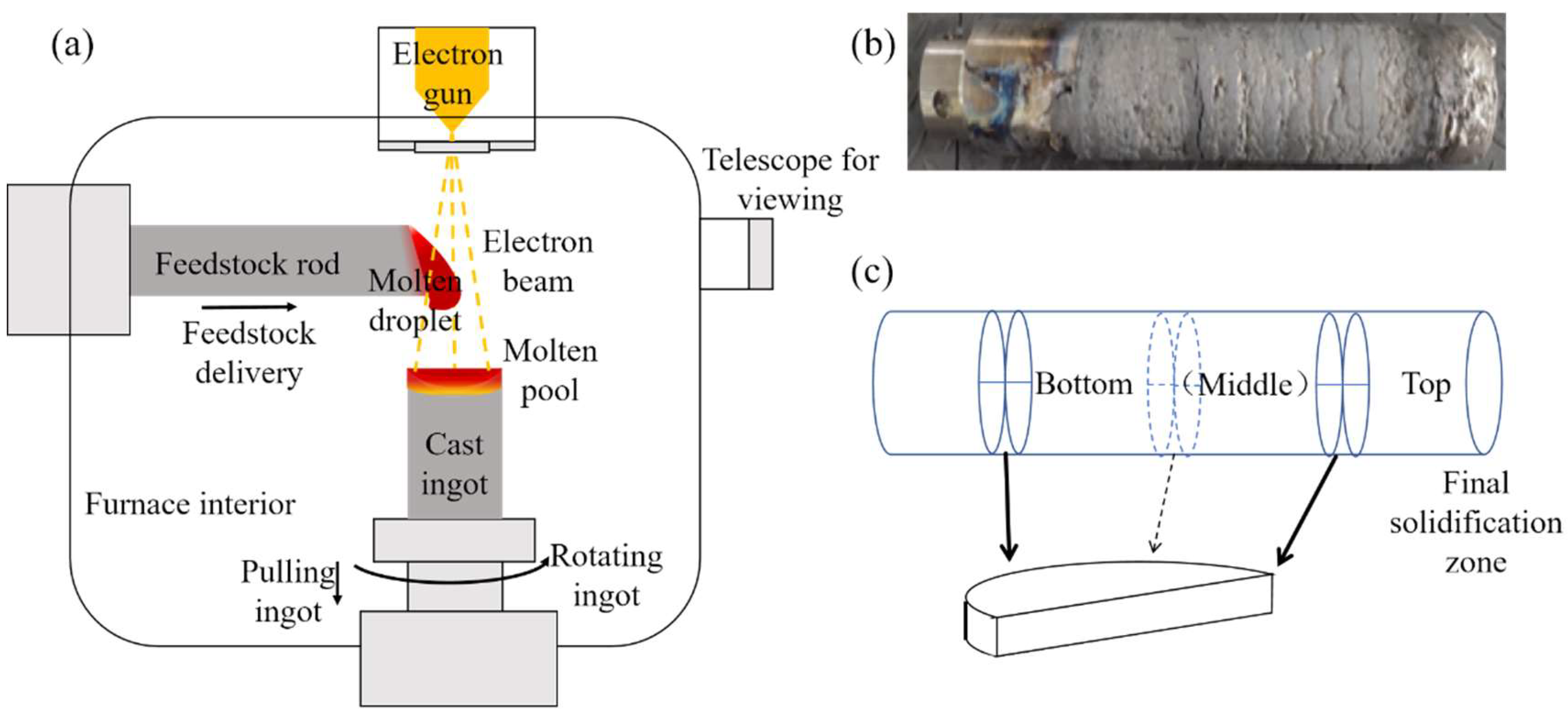 - Dong, G.Y.; Yiliti, Y.; Liu, X.Y.; You, X.G.; Han, W.J.; Dong, L.Y.; Chang, K.; Zhou, H.J.; Li, P.T.; Wang, Y.N. Mechanisms for removing impurities in a single crystal superalloy by electron beam drip melting. J. Mater. Res. Technol.-Jmr&T 2024, 28, 13. [Google Scholar]