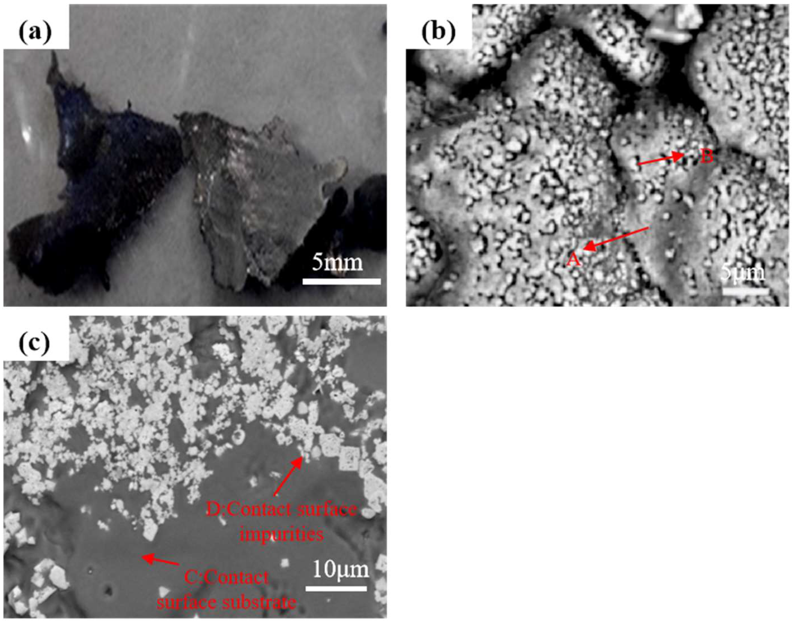 3.2. Surface Morphology and Composition Analysis of the Ingot Final Solidification Zone