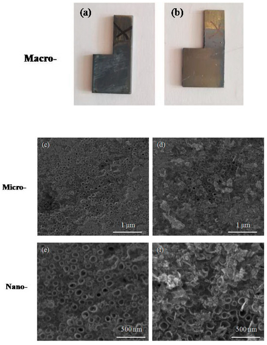 - Durdua, S.; Sancakb, M.; Yalcinb, E.; Ustac, M.; Akagunduzc, E.; Altinkoke, A. Surface characterization of TiO2 nanotube arrays produced on Ti-6Al-4V alloy by anodic oxidation. Surf. Coat. Technol. 2021, 428, 127903. [Google Scholar] [CrossRef]