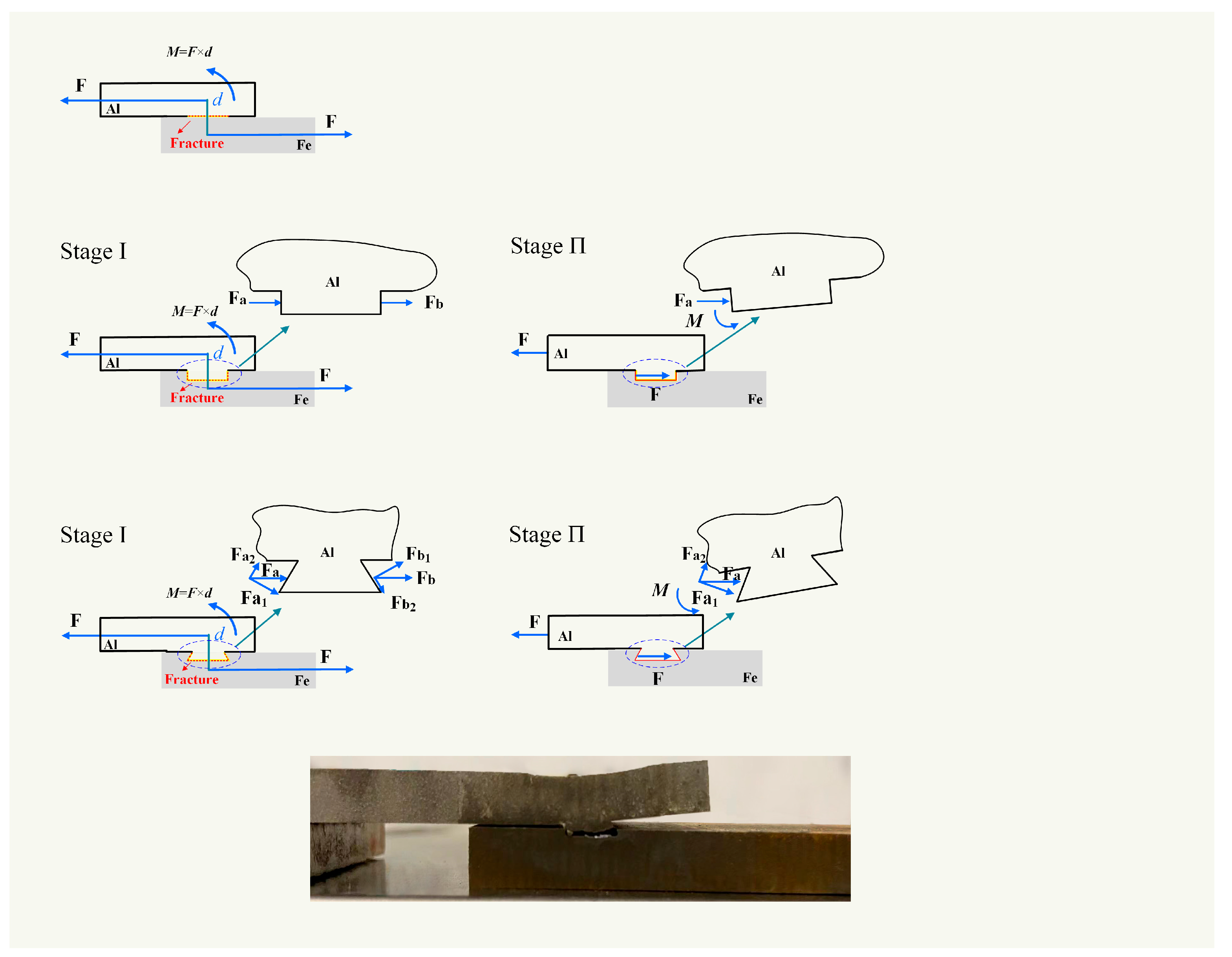 APA StyleTian, X., Wang, J., Zhai, C., He, Y., Chen, S., Jin, Y., Yu, R., & Maksymov, S. (2026). Research on the Shear Forces and Fracture Behavior of Self-Riveting Friction Stir Lap Welding Joints with Medium-Thick Aluminum/Steel Plates. Metals, 16(1), 127. https://doi.org/10.3390/met16010127