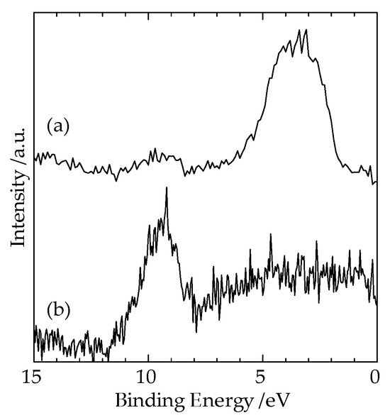 In Figure 4b, however, the Al3s spectrum can be observed between 8 eV and 11 eV, and a relatively broad Al3p spectrum can also be observed between 0 eV and 8 eV.