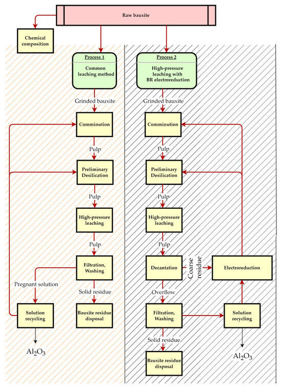 Figure 2 shows a general diagram of the common Bayer process and the process with the use of electrolytic reduction.