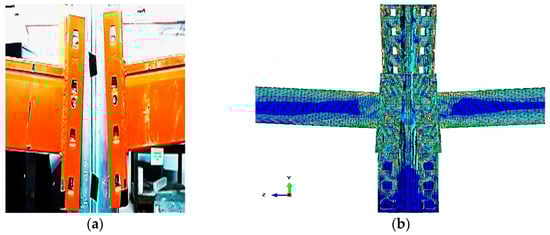- Lyu, Z.-J.; Wu, M.; Huang, Y.; Song, Y.; Cui, X. Assessment of the Dynamic Behavior of Beam-to-Column Connections in Steel Pallet Racks under Cyclic Load: Numerical Investigation. Adv. Civ. Eng. 2018, 2018, 9243216. [Google Scholar] [CrossRef]