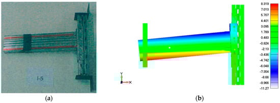 Comparison of single cantilever test for connector class A–B: (a) experimental deformation of connection; (b) FEM simulation of connection deformation (reprinted from Ref. [32]).
