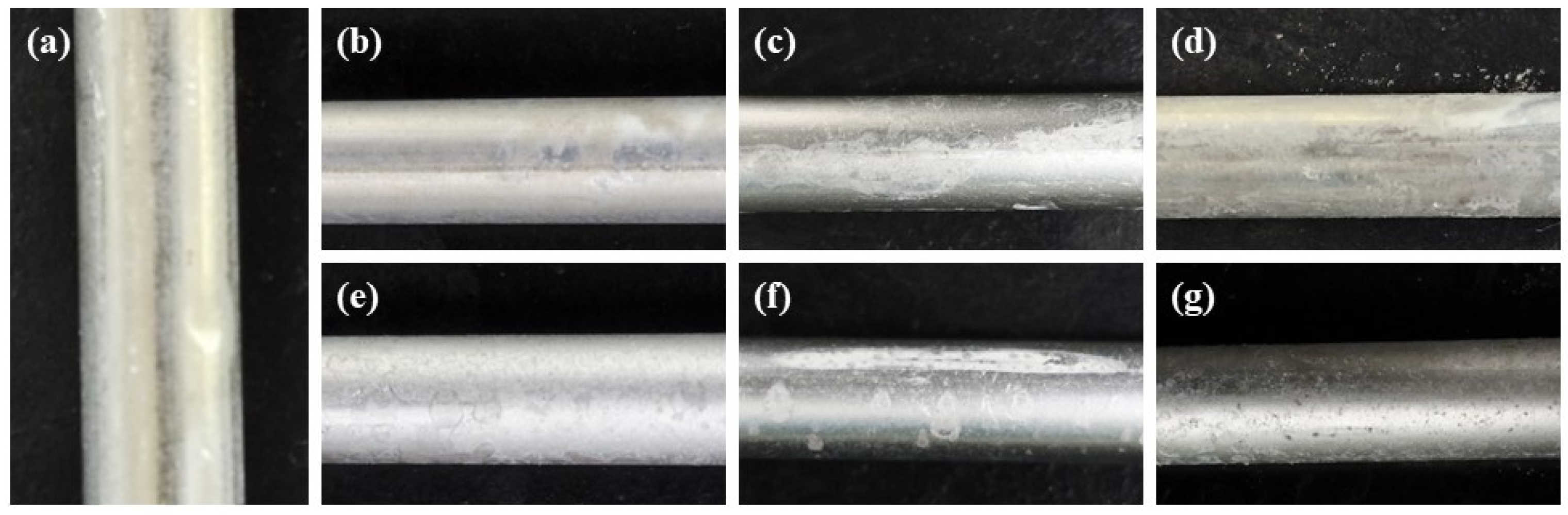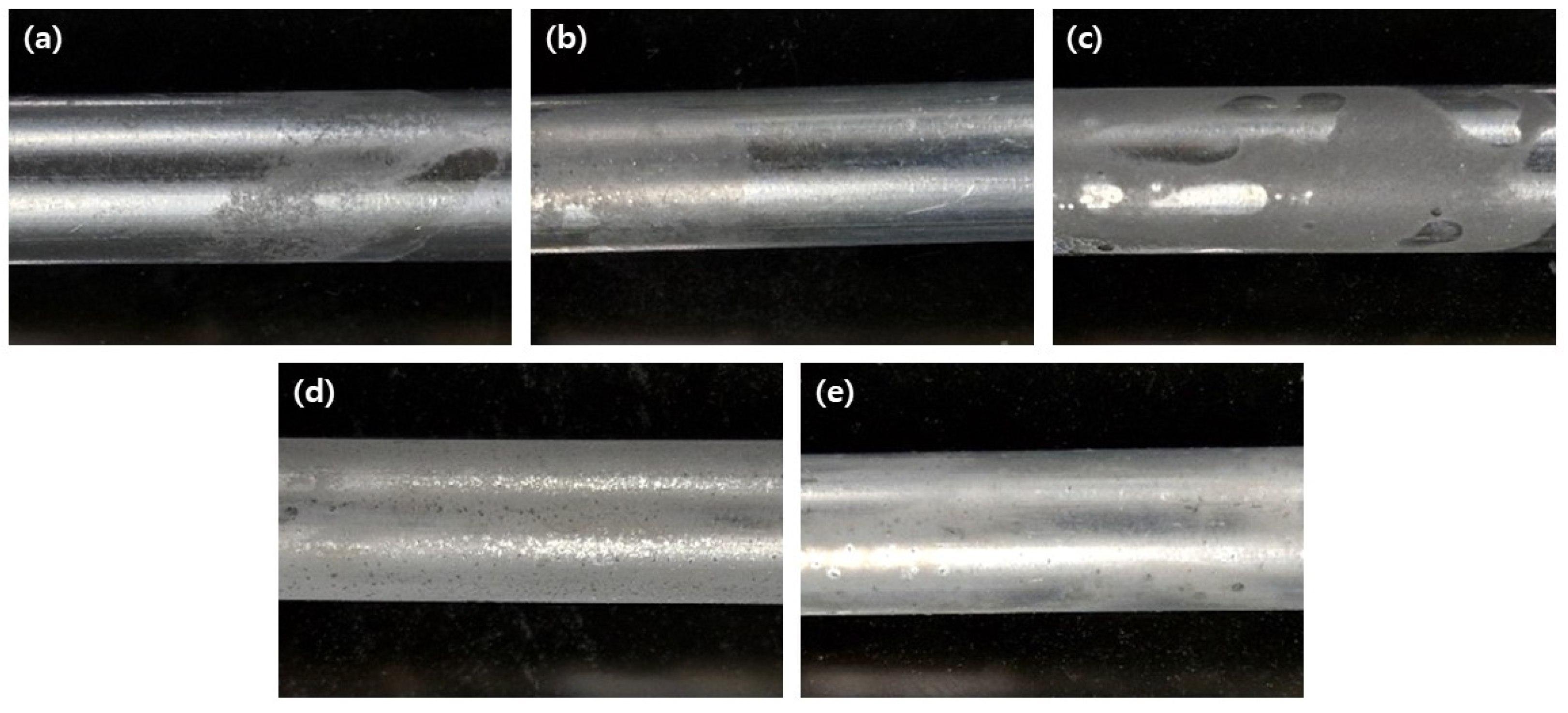 Commercially pure aluminum (Al1070) hollow tube specimens were used in this study. The specimens were cut to a length of 30 mm with an outer diameter of 10 mm. To accurately define the exposed area, the cut ends and non-exposed regions were masked prior to corrosion testing. The effective exposed surface area was calculated as 6.28 cm2 and consistently applied for all corrosion rate calculations and comparative analyses. Before testing, all specimens were ultrasonically cleaned in ethanol for 10 min and then dried in an oven at 40 °C. High-purity ethanol (≥99.7 wt.%, Daejung Chemicals & Metals Co., Ltd., Siheung, Republic of Korea) was used for all cleaning procedures.